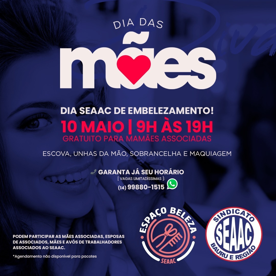 Fique Ligado SEAAC PROMOVE DIA DE EMBELEZAMENTO PARA AS MÃES Atenção associados e associadas ao Seaac! Em comemoração ao Dia das Mães, o sindicato oferecerá procedimentos de beleza gratuitos para... BY agenciasomma abril 7, 2024 0 Comment